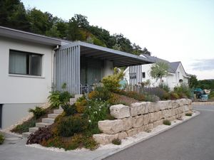 Das Bungalow ist freistehend, kann aber direkt an die Garage angeschlossen sein.